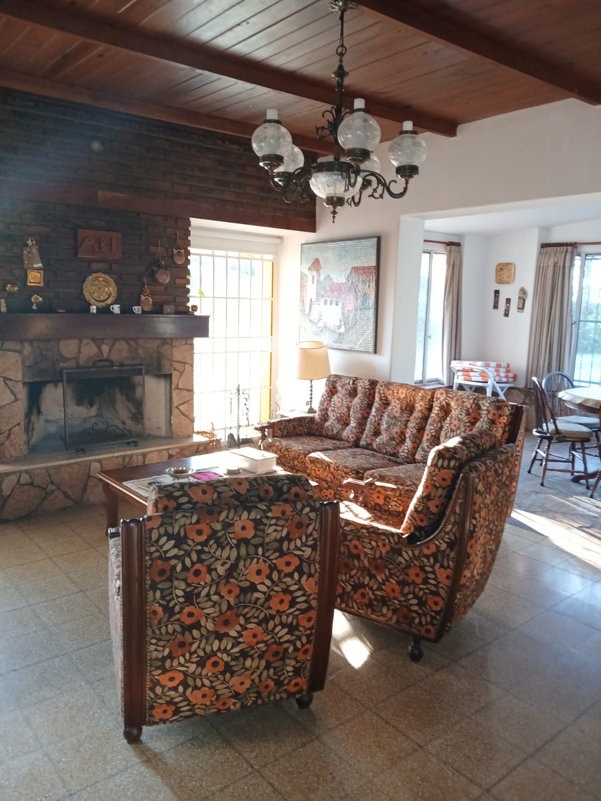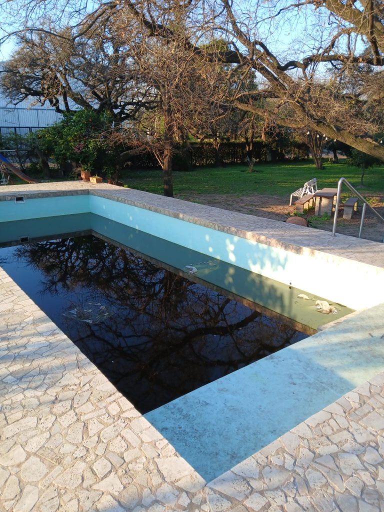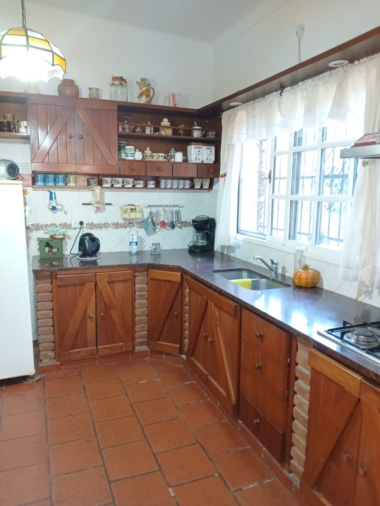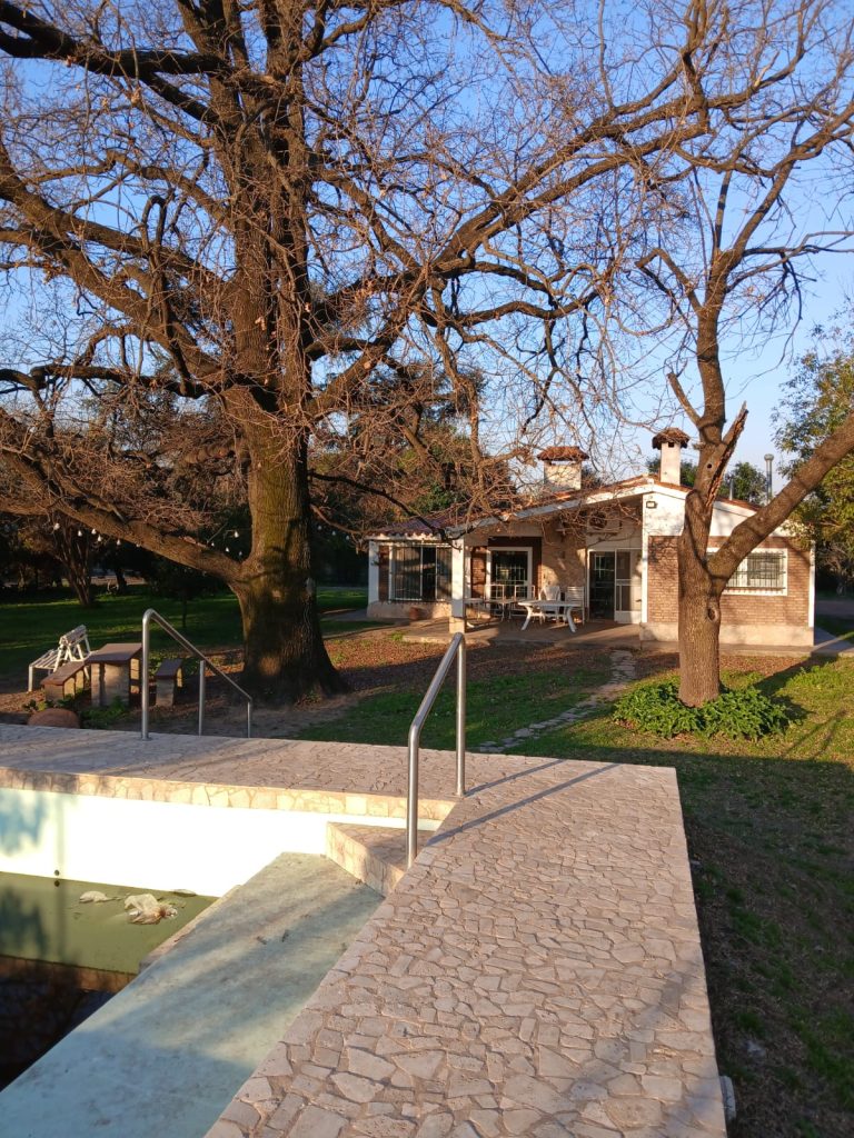 Casa: Living- comedor, 2 dormitorios, cocina, 2 baños, piscina.