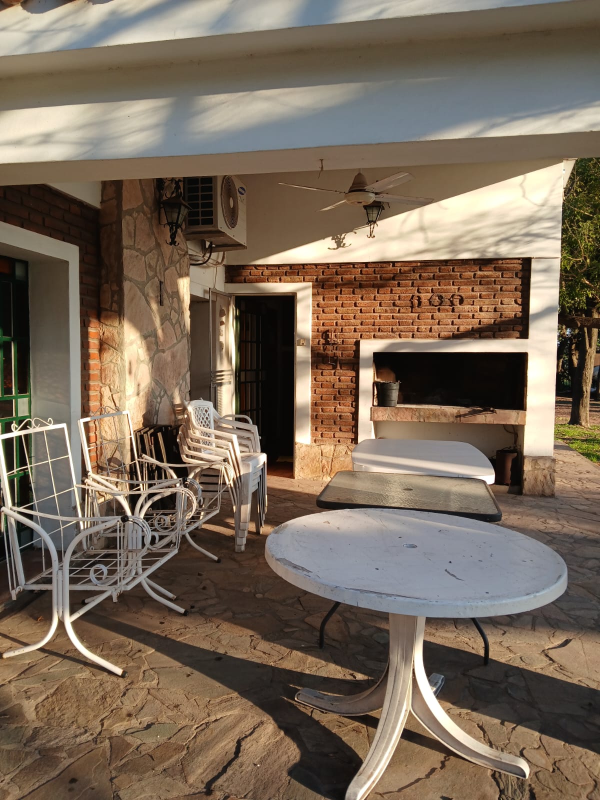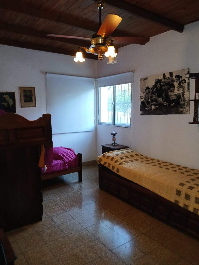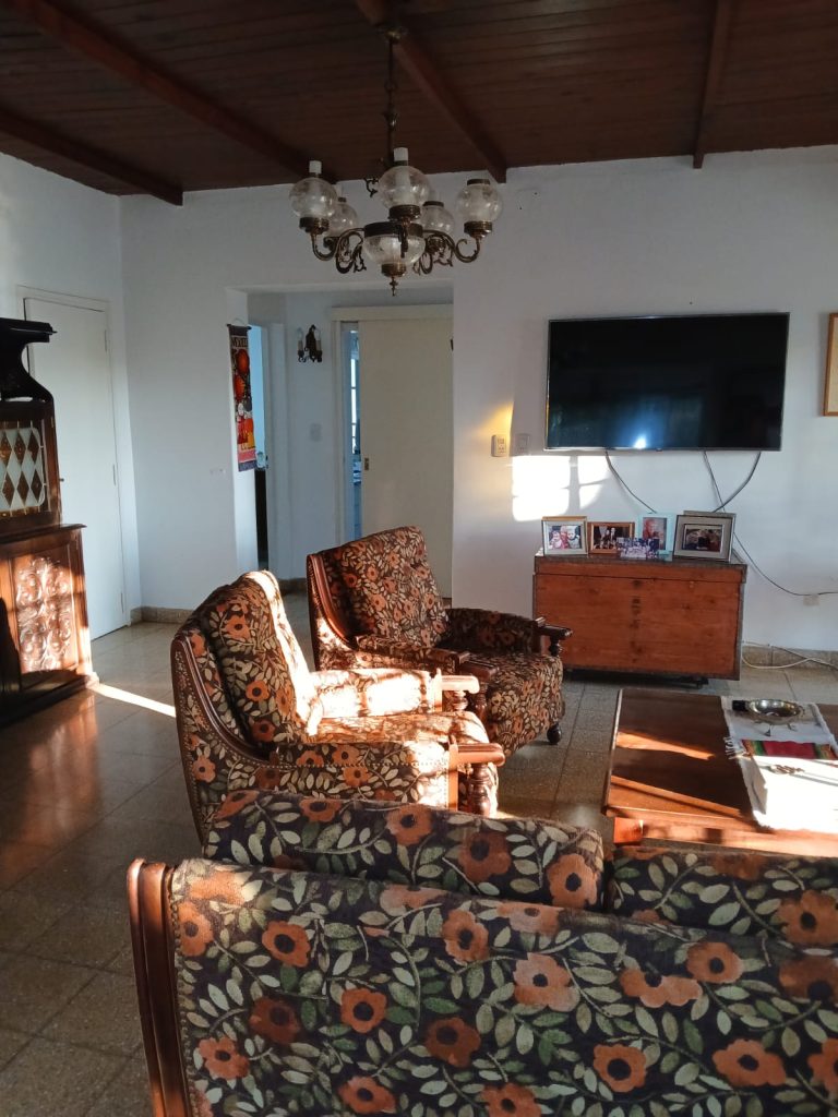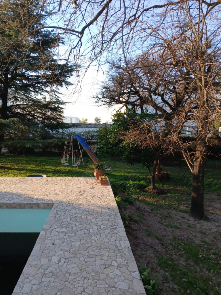 Casa: Living- comedor, 2 dormitorios, cocina, 2 baños, piscina.